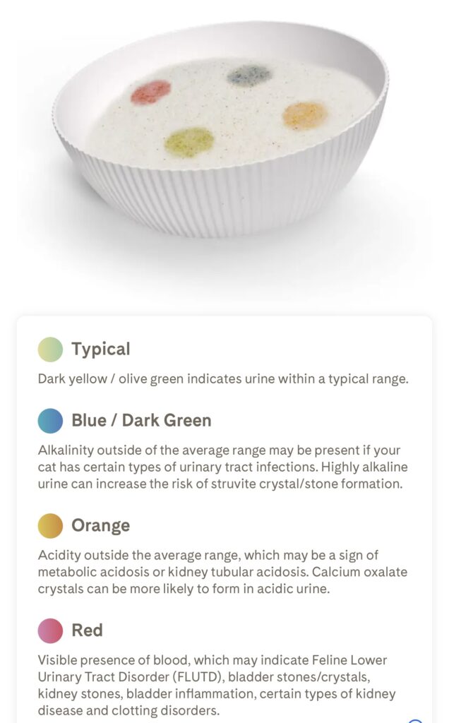 Cats are notorious for hiding illnesses, so it’s often hard to tell if they are sick or in pain. Pretty Litter makes it easier for you to know if your cat is experiencing a potential health issue before urgent medical care is needed, saving you money, stress and potentially your cat’s life. Potential health issues that can be associated with color change include: