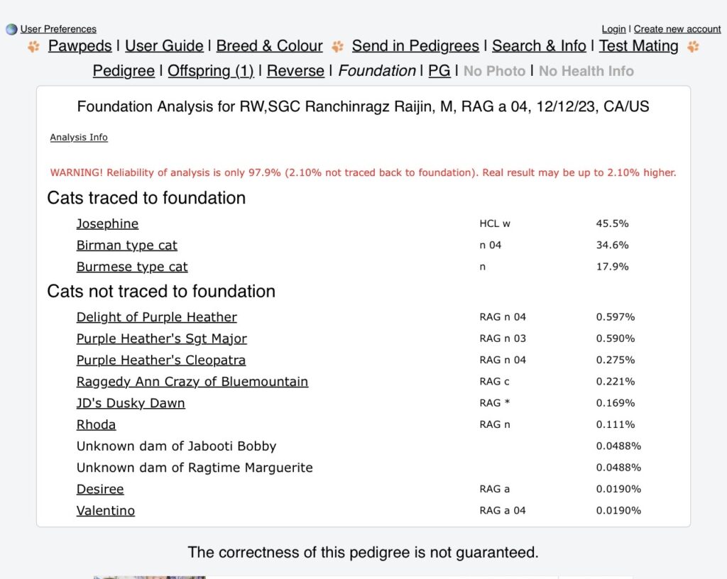 98% Fully Traceable Ragdoll lines to Ann Baker’s 3 Original ancestral